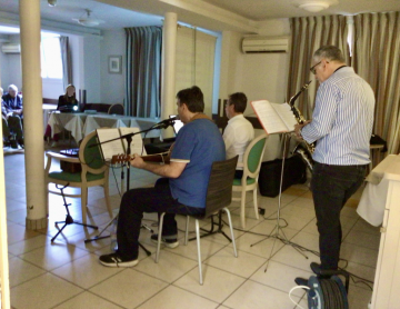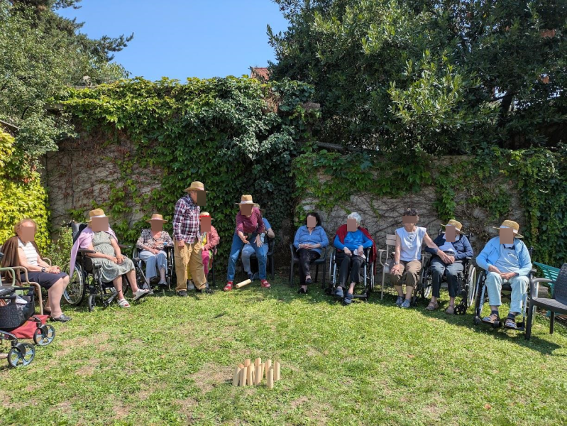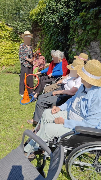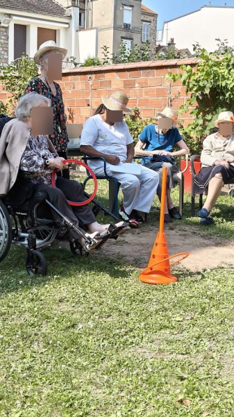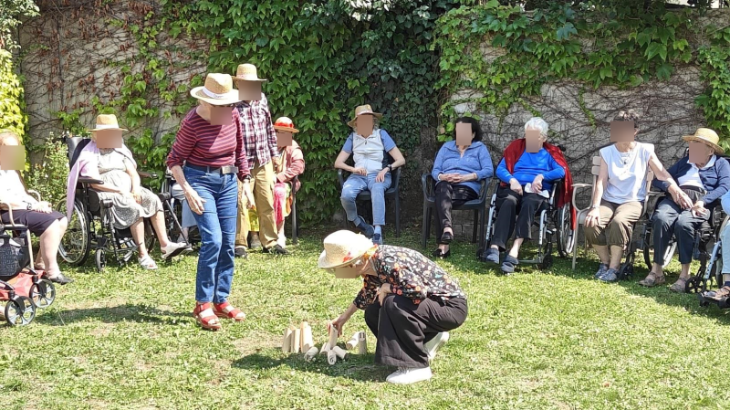 Les températures douces étant de la partie ce jour, nous avons été bien heureux de profiter du jardin avec des jeux de groupe encourageant une émulation bonne enfant : jeu de Molky, jeux d'adresse, association de mot avec une couleur énoncée au lancer de balle, etc.