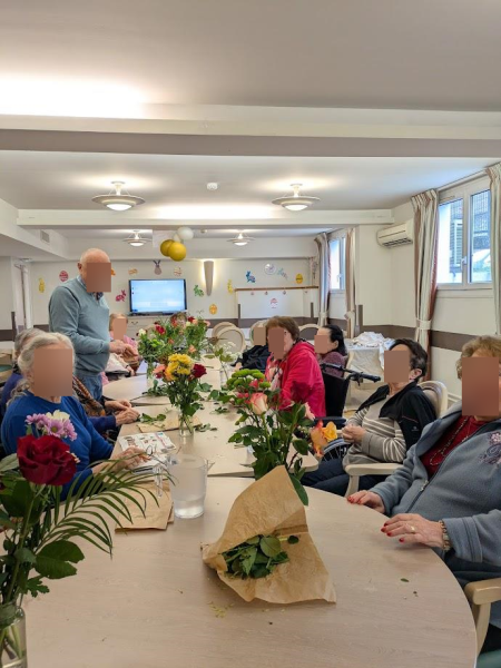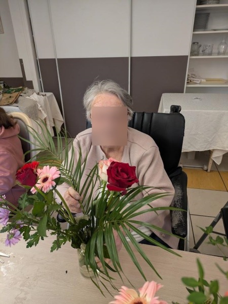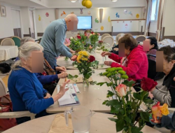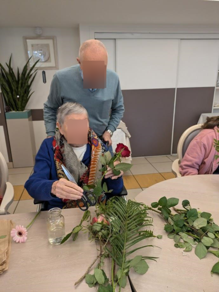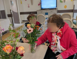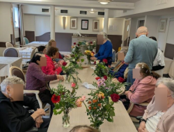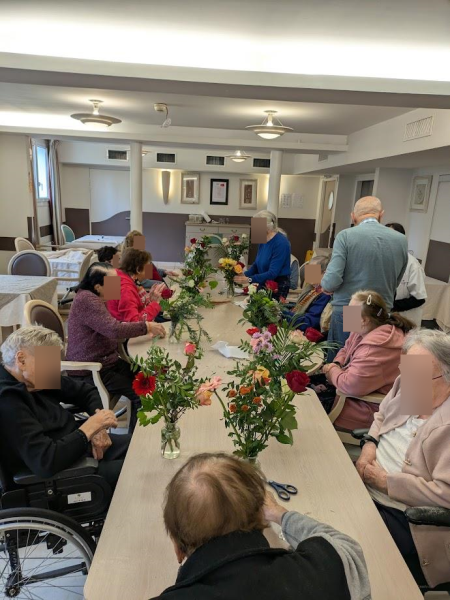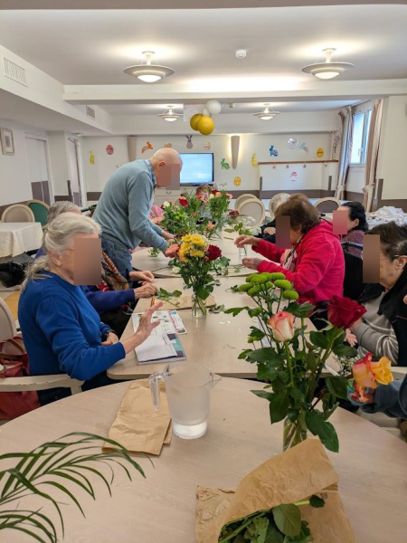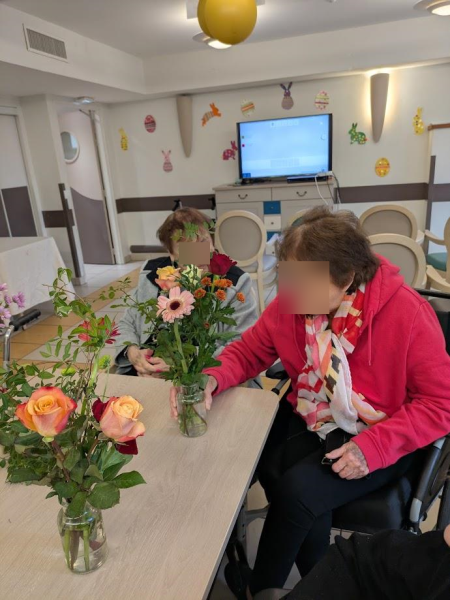 Composer des bouquets avec des roses, des gerberas, des gypsophiles et d'autres fleurs aux couleurs douces ou éclatantes a été un vrai plaisir pour les résidents.
