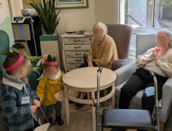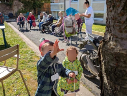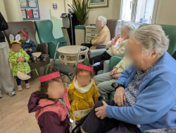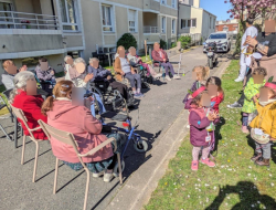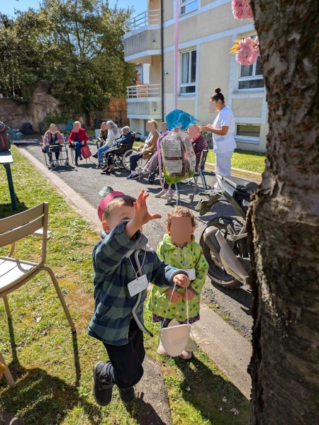 Même si seulement une dizaine de résidents a pu sortir au jardin avec les enfants, un petit tour dans les étages a permis à davantage de résidents de profiter de leur compagnie attendrissante.