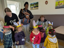 Après avoir revêtu leur tenue de lapin chasseur, les enfants sont sortis au jardin avec un groupe de résidents. Les œufs étaient à chasser dans les arbres et arbustes du jardin où chaque enfant a trouvé son gibier en chocolat.